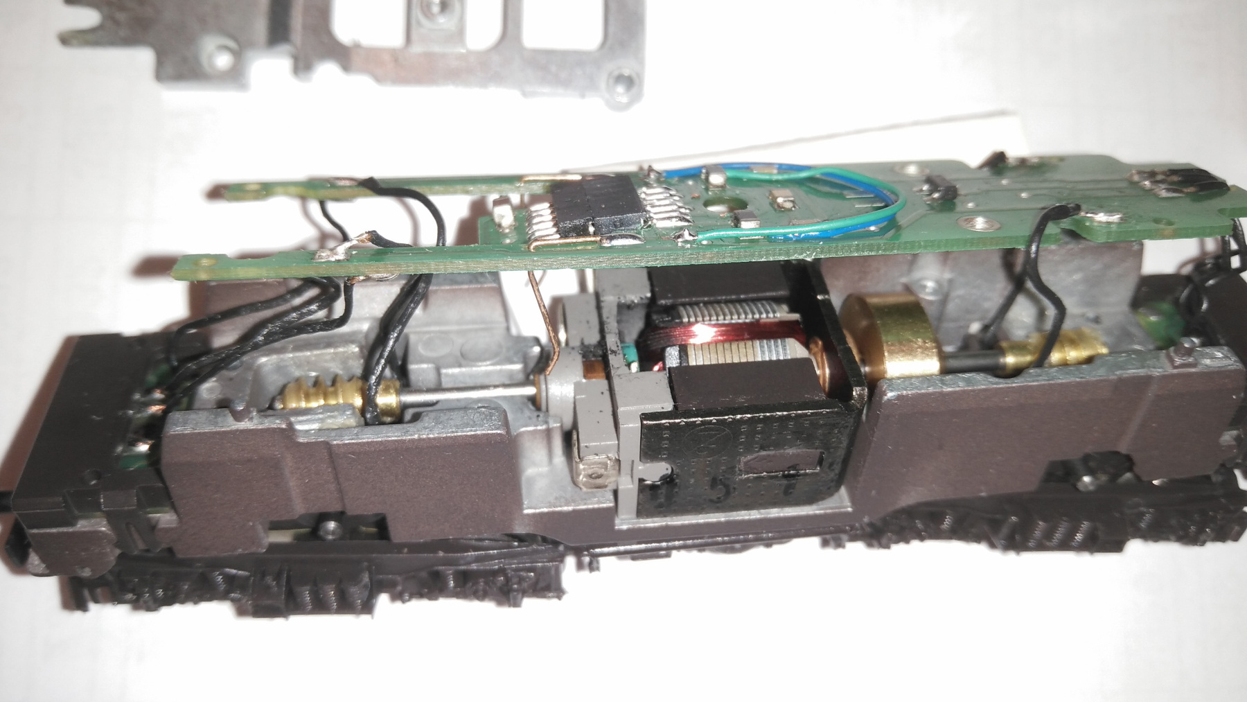 Om de defecte locs te testen heb ik gebruik gemaakt van een Fleischmann regler 6720 in combinatie met de Fleischmann trafo 6710 (14V - 12VA).Ik heb de plus en min op de koolborstels gezet (waar de veertjes contact maken). Van beide Fleischmann locs bewegen de wielen zeer langzaam. De leds branden. De motor wordt in enkele seconden zeer heet en er is weer een rookpluimpje zichtbaar. Bij de Roco-loc branden alleen de gloeilampjes.Tot nu toe heb ik de locs alleen van de buitenkant gezien. Ik weet niet hoe ik nog verder kan testen.Misschien kan iemand mij hierin verder begeleiden?