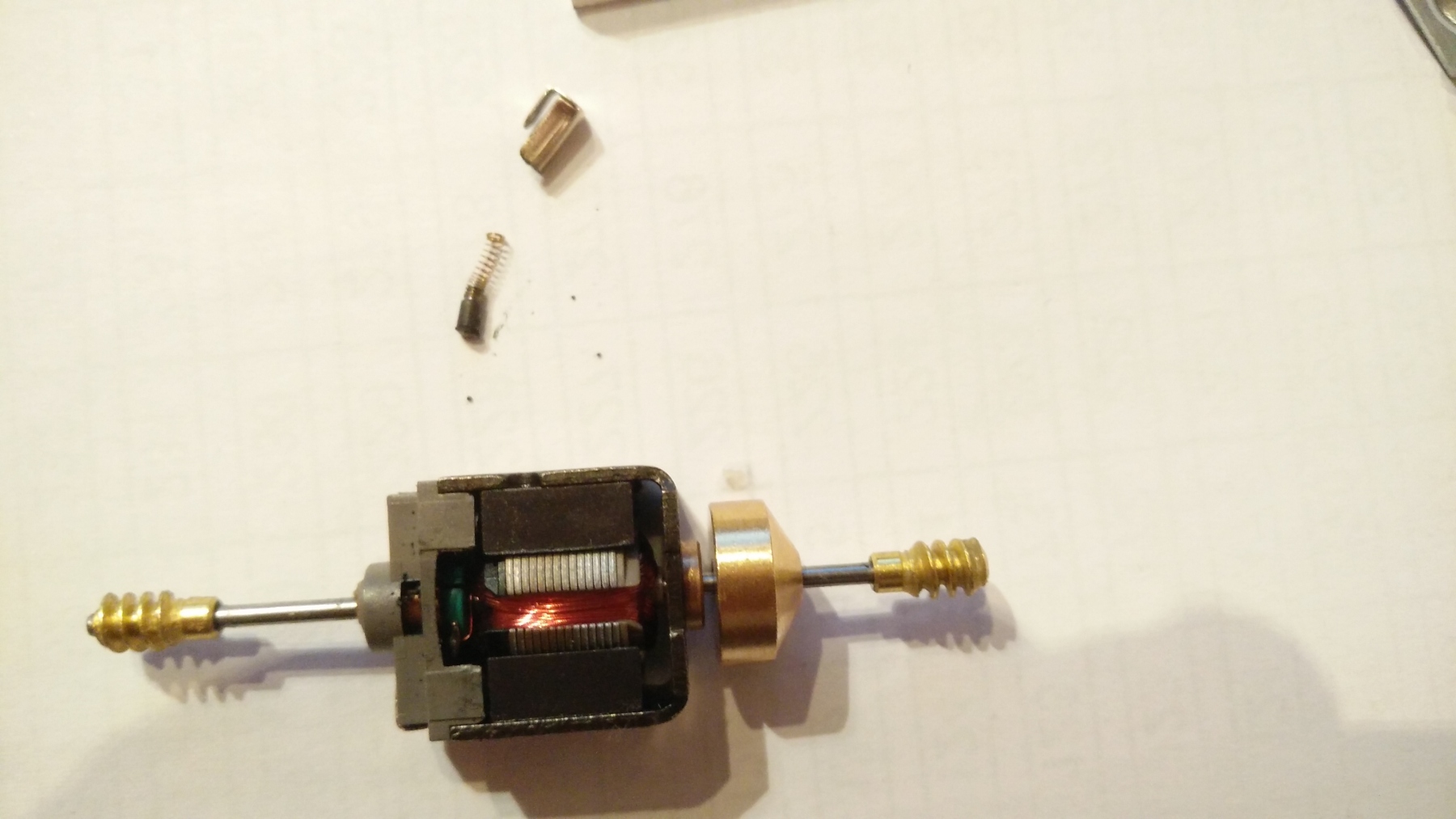 De motor ligt nu los en als ik met een 9V-blok spanning zet op het met de pijl aangegeven punten komt er geen beweging in de motor.Doe ik iets verkeerd?