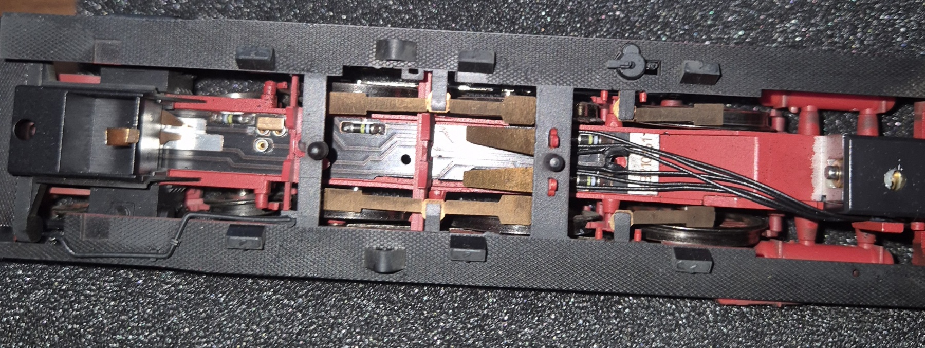 Ik ben bezig om bovenstaande lok omruilen te bouwen van DC naar AC. Het is een 01 met aandrijving in zowel tender als de lok zelf (via cardan).