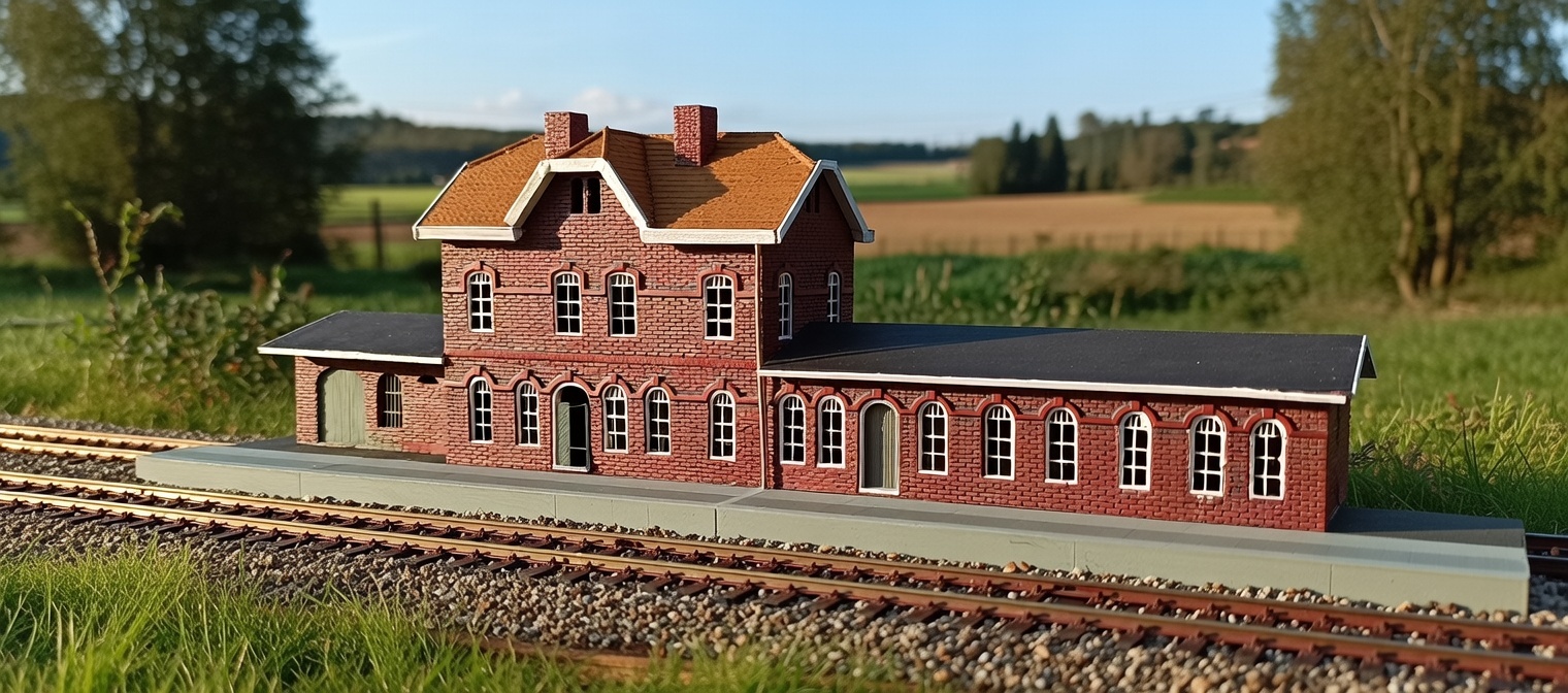 Hier mijn station Laarwald. De ornamenten hadden nog wat subtieler gekund en de afwerking en schilderwerk wat netter, maar op een foto komen dat soort foutjes veel meer tot uiting dan in werkelijkheid, en eenmaal op je baan valt dat helemaal niet meer op, tenzij je natuurlijk een diorama maakt waar het volledig op de detaillering aankomt.