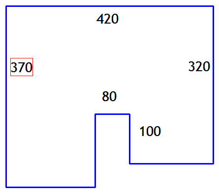 Links: 370 cm (tegen muur)