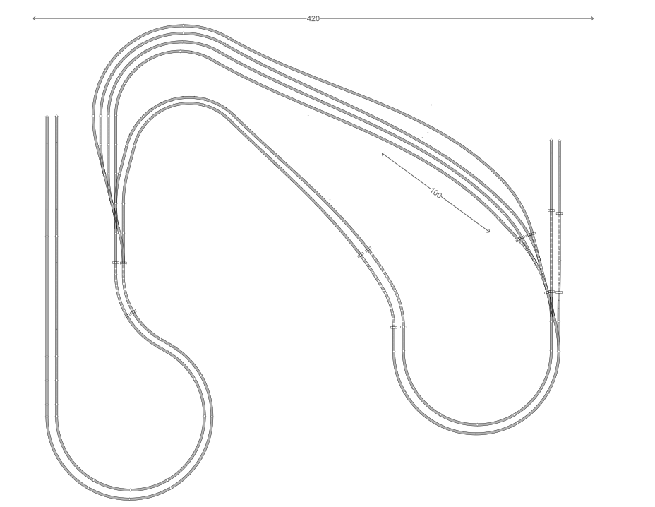 Laat ik eens een poging wagen. Je bent vakbekwaam, een timmerman. Een hoop problemen kun je oplossen met dit ontwerp van de modules voor je toekomstige modelbaan. Ik ga het niet uitleggen maar op onderstaande schets, ik ben nergens vakbekwaam in, kun je afleiden hoe ik je modelbaan zie.Het is een rondlopende modelbaan met twee tafels en een boog met op de uiteinden een helix. Beide spiralen met een minimale doorsnede van 100 cm verbinden deze tafels, met een schaduwstation inclusief keerlus, gelegen op een afstand van 60 cm onder deze tafels. Alle treinen blijven in beeld. Alles is binnen handbereik. Rob