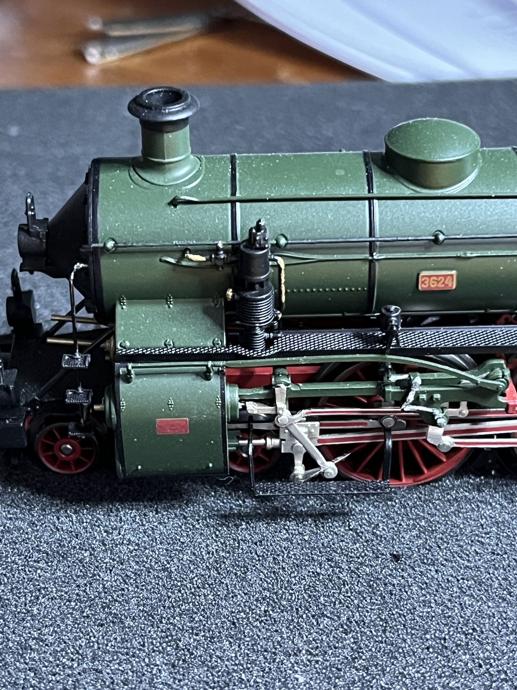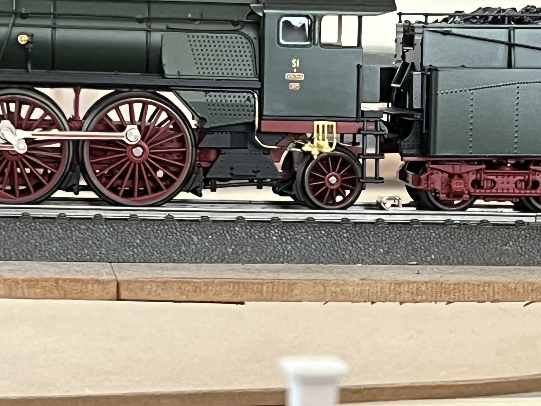 Er lijkt iets mis met de stoombesturing. Bij de meeste locs die ik ken zitten de twee stangen, die nu een "omgekeerde L" vormen, zo dat ze een L vormen. Of is dit een speciaal kenmerk van de S3/6?