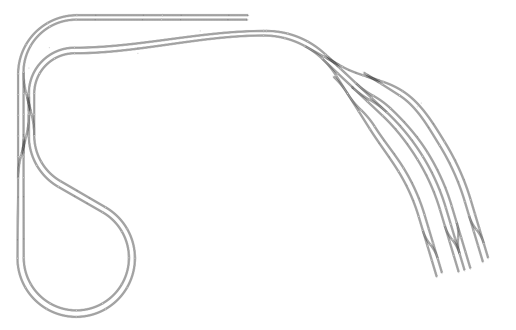 Zelf, zou ik gebruik maken van de U vorm en het station in een hoek te stoppen. Het is net wat je wilt. Die wissels links liggen zo, zodat een trein die aankomt weer terug kan naar waar die vandaan komt. Als een trein uit het schaduwstation komt, kan hij rondjes blijven rijden tot het oneindige. Of je kan een keer afslaan naar het station toe. En ook als een trein uit het station vertrekt kan door de lus rijden en terugkeren.