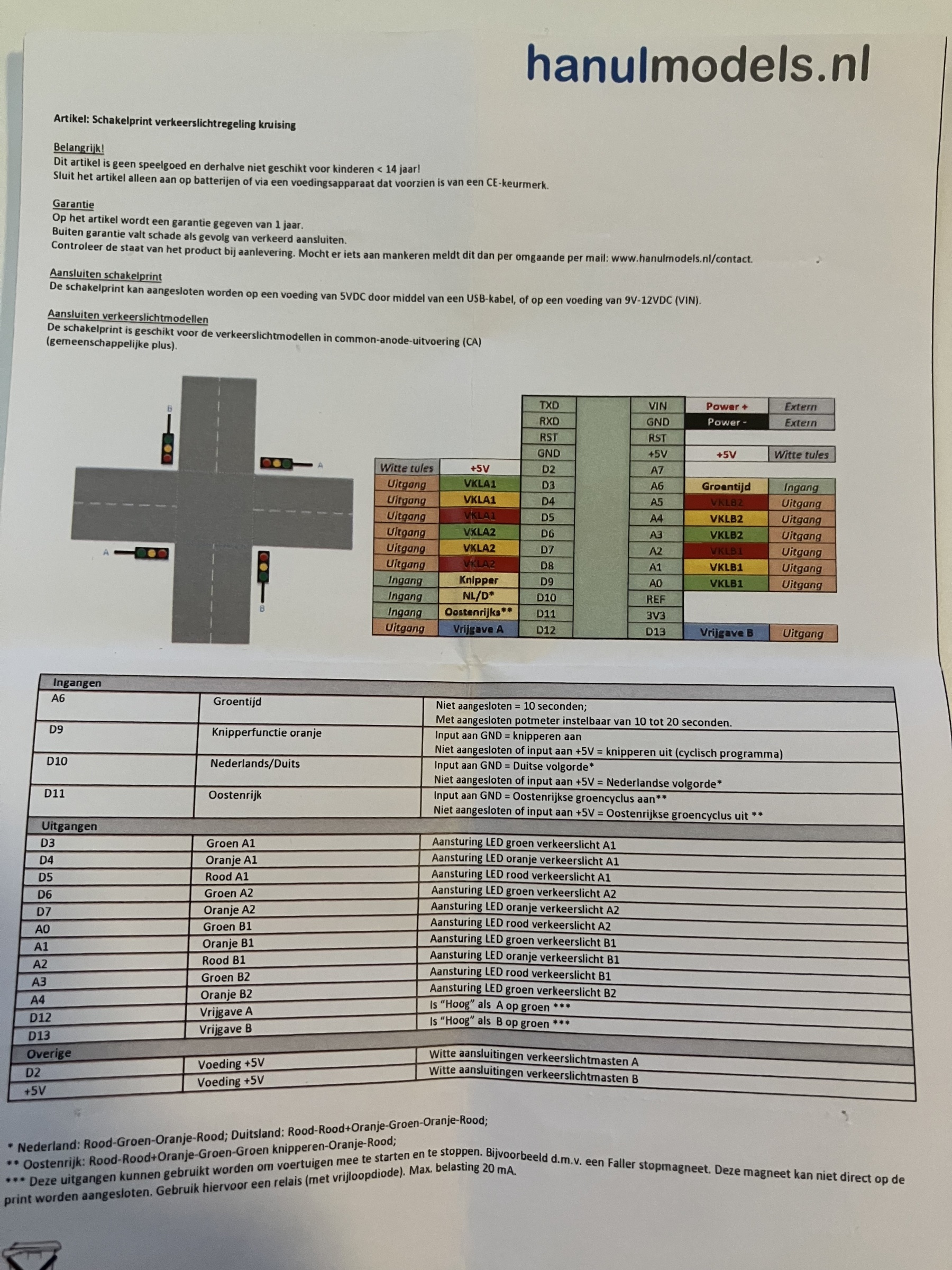 Wie kan me helpen bij het aansluiten van de verkeerslicht schakeling van hanulmodels (