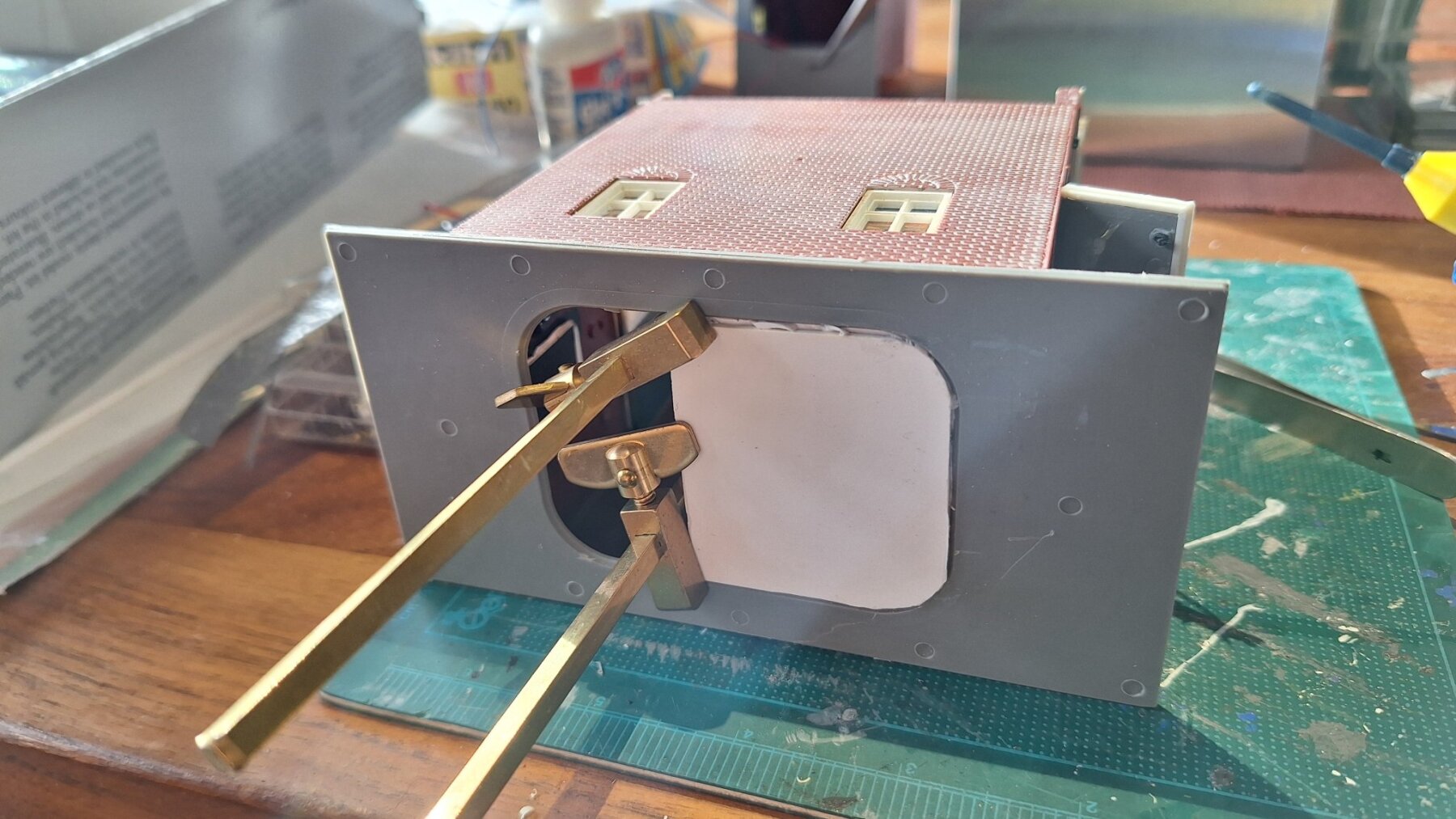 Een loc-en-tie lijm (secondenlijm) is wel een must hier, maar pas op met je vingers en je bouw omgeving.