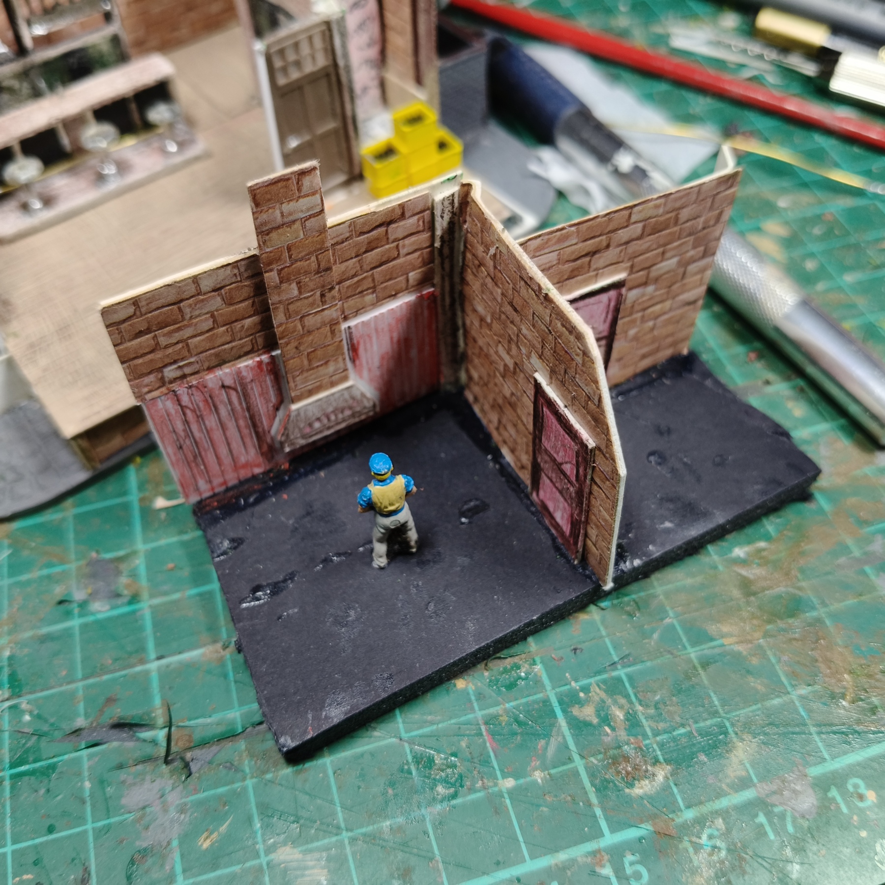 Eerst de wandjes in de grijze acrylverf.