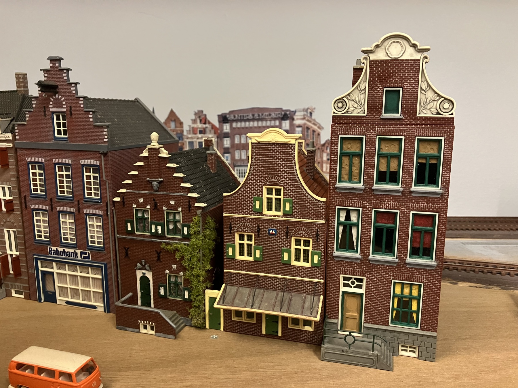 Hier een voorbeeld van hoe ik mijn huisjes heb geschilderd. Bij eentje heb ik ook een deur naast het huisje geplakt, dan krijg je een steegje met een poort in de straat. Zo gaat het net wat meer leven. Huisje met klimop doet het ook altijd goed. Toch wat groen in de binnenstad.