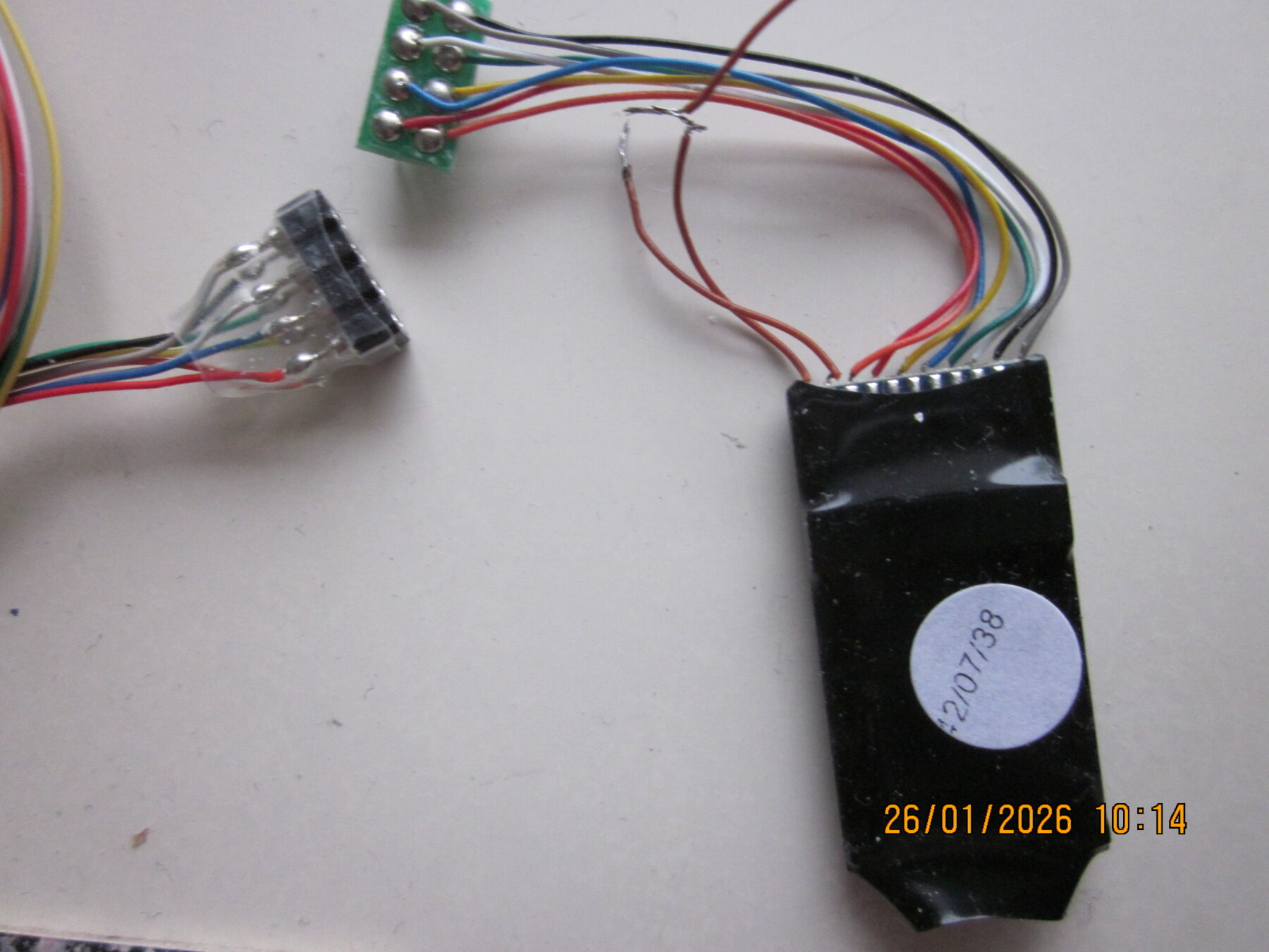Ik wil een NS VIP (Kameel) digitaliseren met de volgende componenten: Locsound 3.5(52425) en adapter 51950. Slechts 8 draden aan de decoder(hoewel de handleiding ook van een violette draad spreekt. Deze zit er niet aan - ook geen aansluiting). Ook de adapter heeft 8 draden.