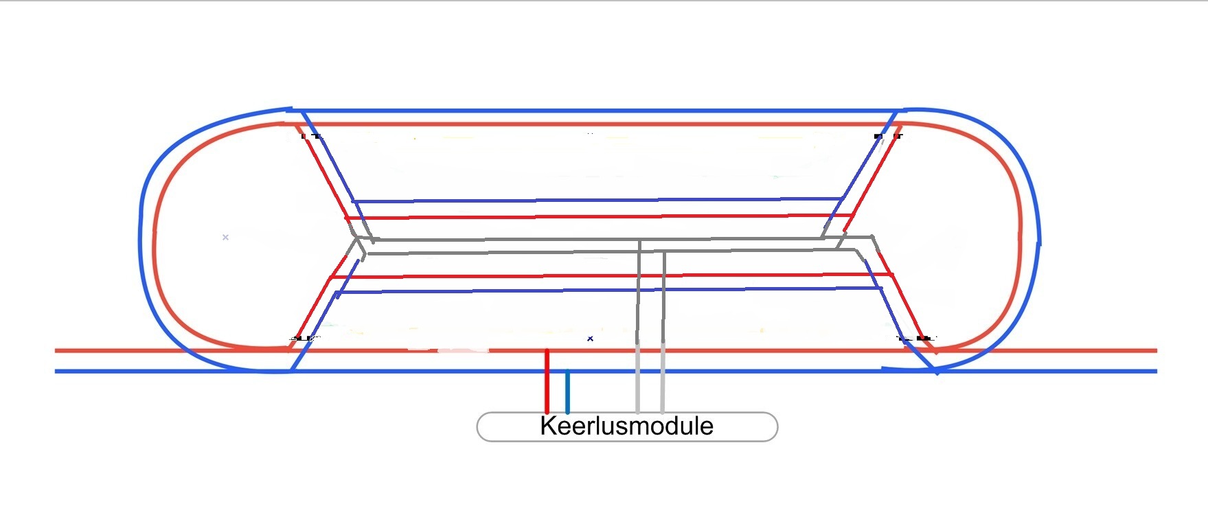 Je hebt maar 1 spoor dat dient als keerlus (als onderstaande tekening klopt, met weglating van de meerdere sporen per kant).