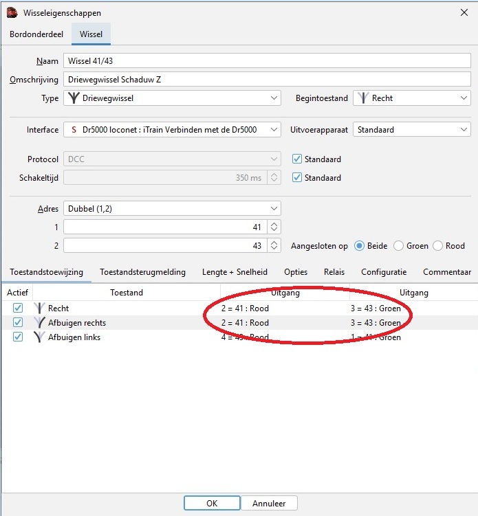 Daarom nu uitgangen 41 en 43.Deze werken met de MM naar behoren.Alleen in iTrain krijg ik het (nog) niet voor elkaar.