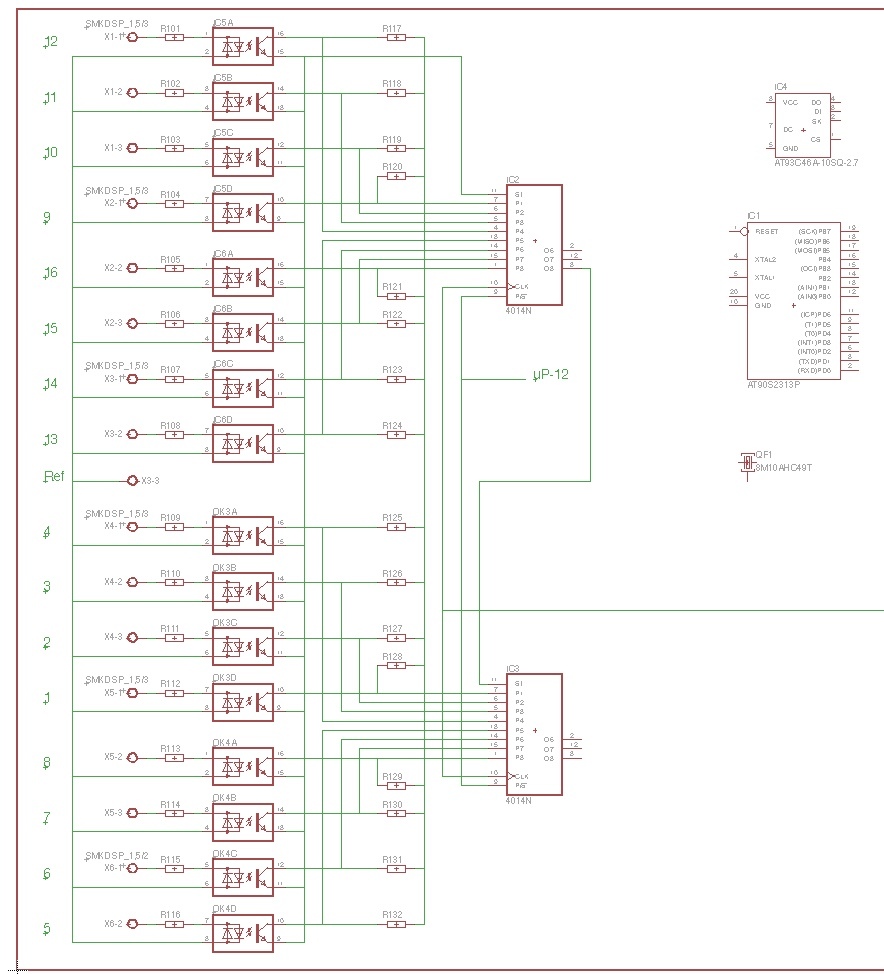 Lang geleden heb ik een poging gewaagd om van de LDT RS-16-Opto het schema te herleiden. Ik neem aan dat het LDT RS-8 module soortgelijk is, echter 8 ingangen met een diodebrug voor de rijstroomdetectie zoals in reactie #18 of #20.