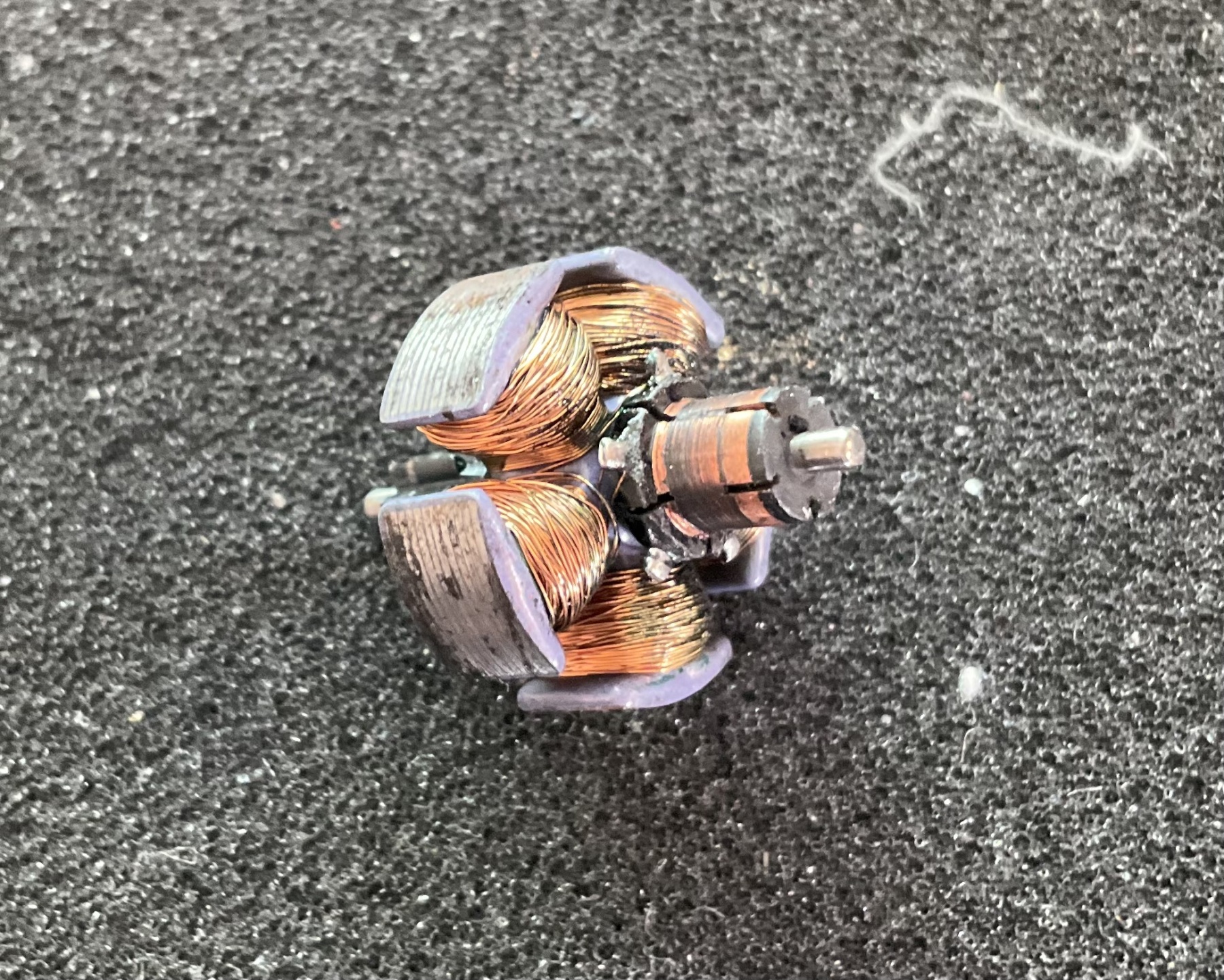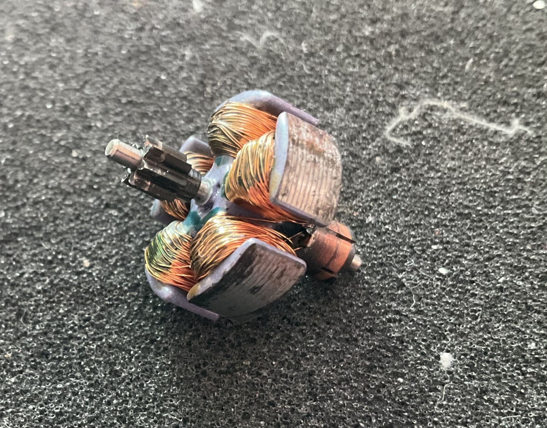 ik houd het ook op koolborstels die in de olie zijn. Zet er nieuwe koolborstels in. En als je die niet kan krijgen, leg deze een nachtje in de wasbenzine.