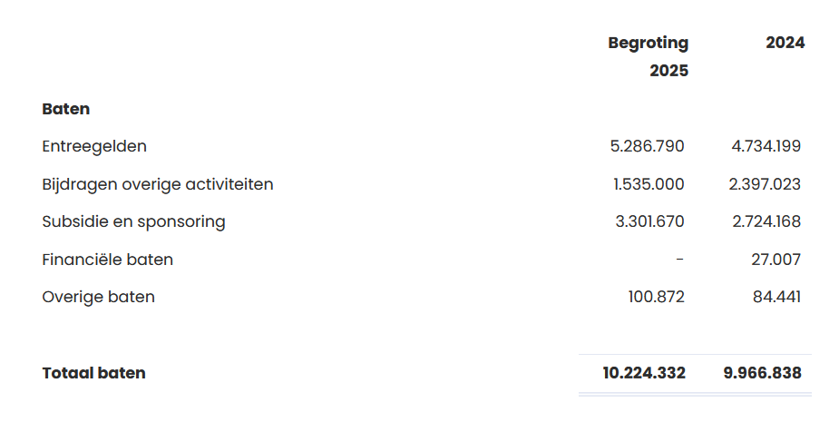 structurele subsidie-inkomsten, dankzij een sterke focus op bezoekersaantallen en
