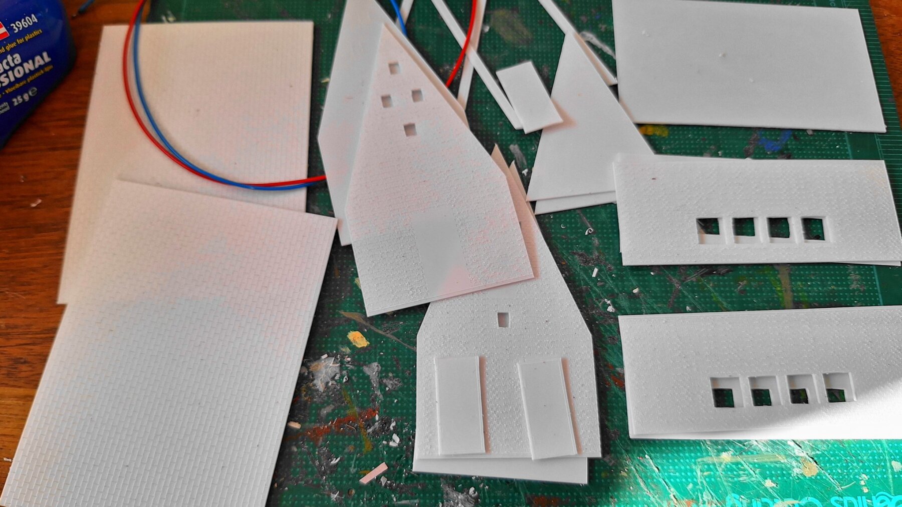 Bij de overgenomen spulletjes van Cor, zaten twee bouw pakketjes van geplot styreen van Sleutelspoor