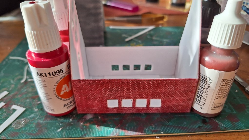 Daarna worden de muren gekleurd met diverse kleuren rood/bruin van Vallejo verf.