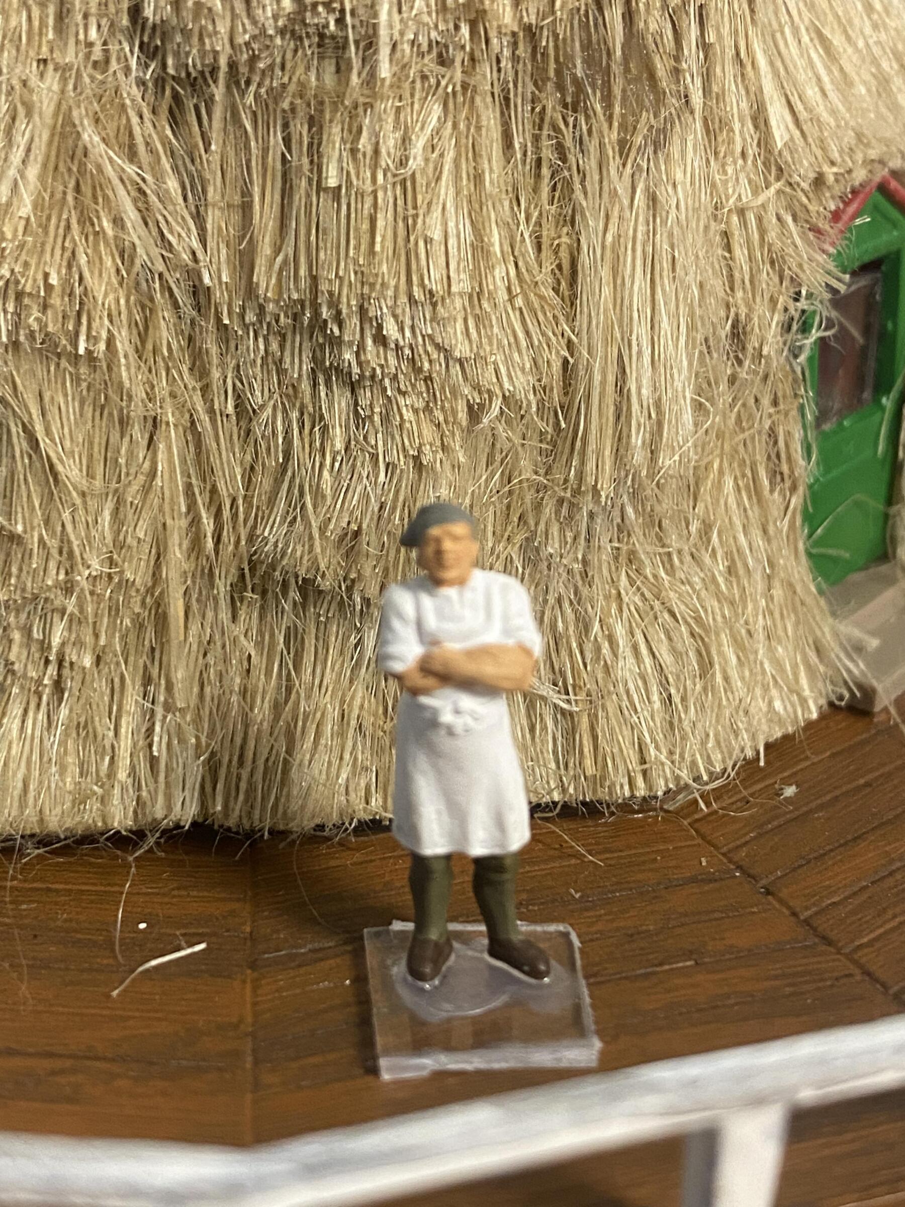 Was het nou Peter van Seuren of de gebruiker Scratchbuilt die een ouderwetse grasmat als rieten dak gebruikte. Dat had iets meer regelmaat. Lijm erop en kammen, meen ik. Staat ergens in draadje op dit forum. Wellicht een idee om te proberen voor een volgende rieten dak. Niet dat het er niet uitziet, maar het is een beetje chaotisch.