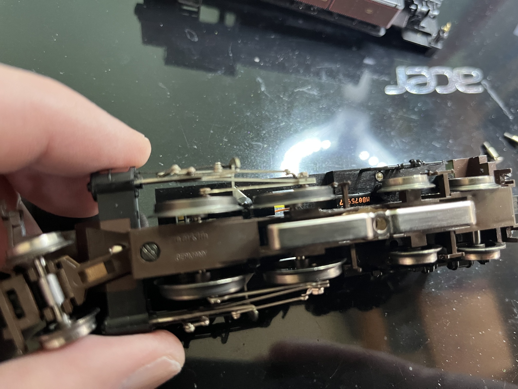 Het kan best zijn dat de boel al iets uit het lood stond toen ik de loc de eerste keer ter reparatie aanbood, maar dan toch nauwelijks zichtbaar.
