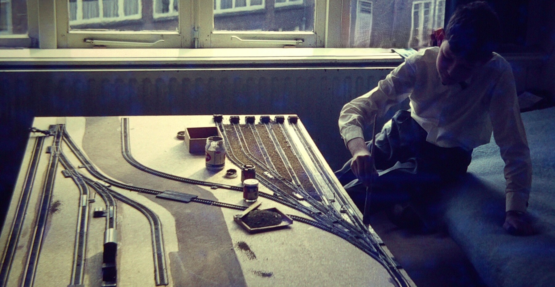Er moet in de diamagazijnen hier thuis een dia zijn waarop ik op z'n zondaags 60 jaar geleden bezig ben met de aankleding van de 'rangeerbaan'...
