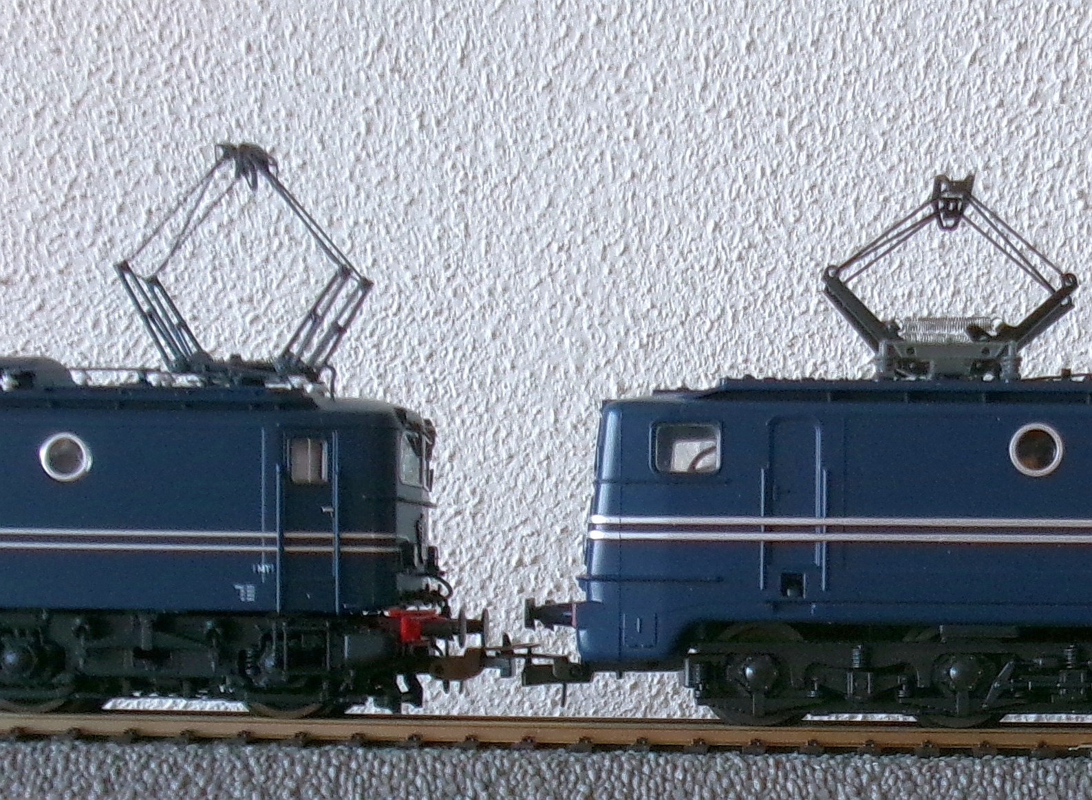 De 1300 op de foto is van einde jaren 80. Inmiddels voorzien van een wat elegantere beugelkoppeling, maar nog geen KK.Er waren toen twee sets met 1200 en 1300 en drie plan E rijtuigen uit het 3e klasse tijdperk.