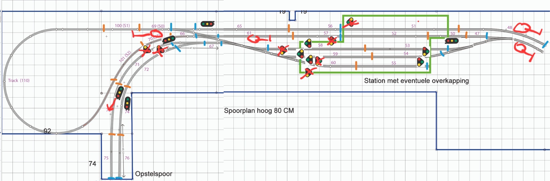 Ik had niet gelezen dat het opstelsporen zijn, dan volstaan dwergjes inderdaad ook