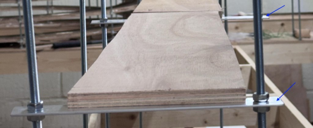 Bij een eerdere baan gebruikte ik 12 mm watervast verlijmd hardhoutmultiplex, niet verschroefd, en dat trok wel krom, tot mijn verbazing. Ik heb dat zware hout een andere bestemming kunnen geven.