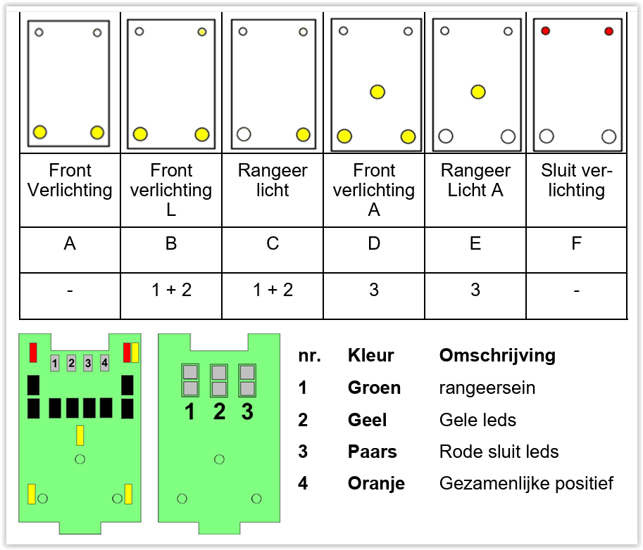 Wat ik eigenlijk wil, is standaard seinbeeld D als frontverlichting. Dus 3 lichten.