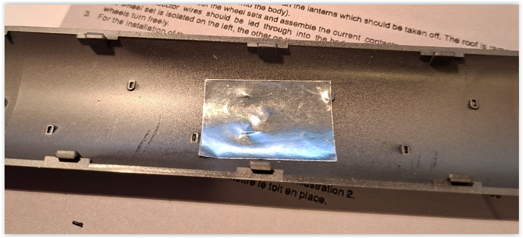 In het rijtuig zijn uitsparingen voor de verlichting: