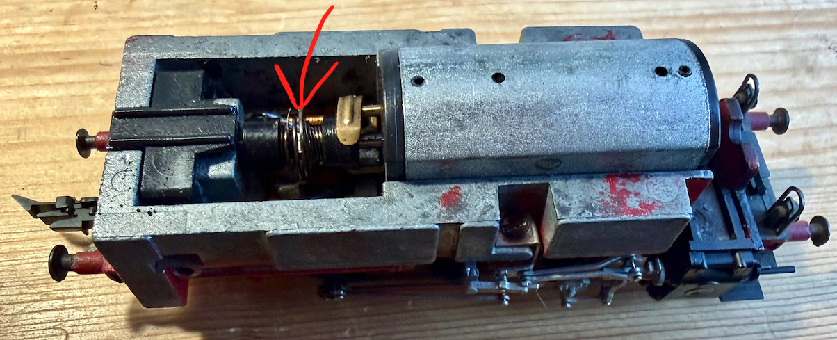 Ik heb ooit zo'n ding zelf gehad, er stond mij iets bij van een schroef boven  in (in een dom of in de cabine) maar ik kan me ook vergissen met een andere stoomlok.