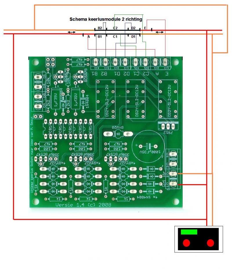 Die vraag kan ik nog niet beantwoorden. Voor de juiste aansluitingen moet je eerst bepalen of de keerlus in 1 of 2 richtingen wordt bereden. En je moet 'n merk/type keerlus schakeling bepalen - ze zijn niet allemaal hetzelfde.