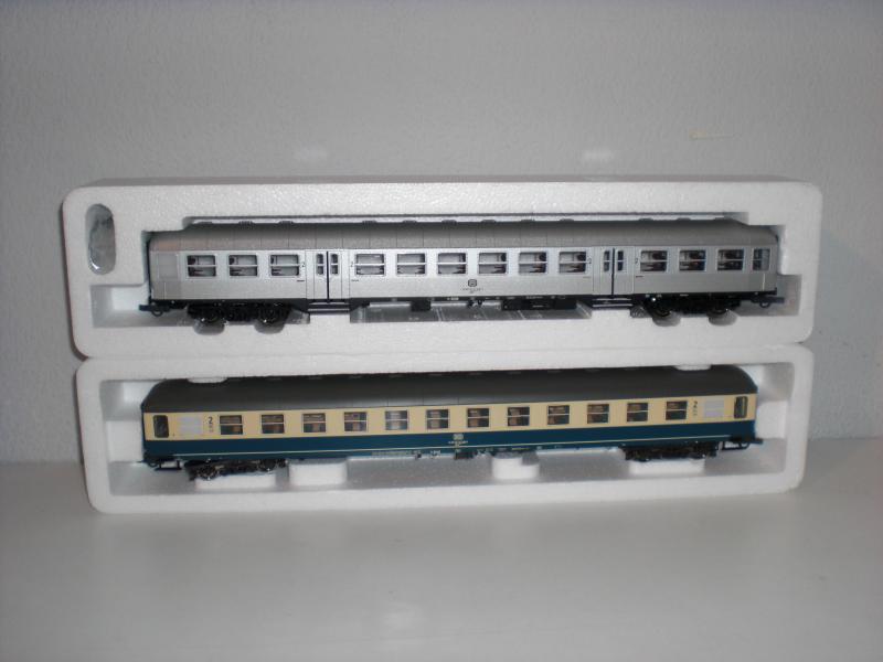 De zilverling in vroeg tijdperk 4-uitvoering (ik wist niet dat ie nu al leverbaar was) en een Bc (couchetterijtuig) in o/b... evenmin wist ik dat Roco die ook ooit had gemaakt.