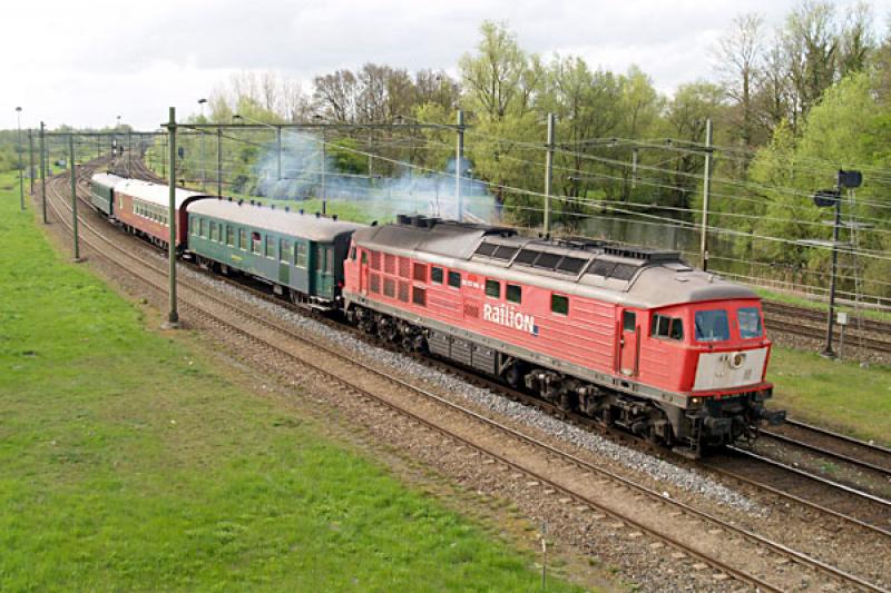 Utrecht Lunetten, 29 april 2006. Railion-loc 232 906 reed met drie rijtuigen van de SSN de Koninginnedagrit van de NVBS. De tocht voerde vanaf Gouda naar de Vam in Wijster en naar Pon in Leusden. Volgens de dienstregeling zouden er vijf rijtuigen meerijden, maar kennelijk was er niet zo veel belangstelling voor deze tocht.
