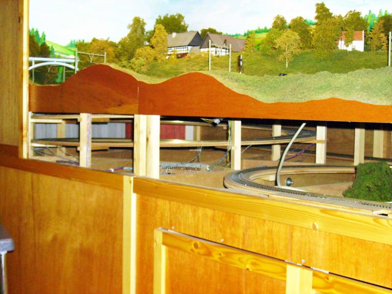 Het probleem is dus dat ik 1 laag heb met de daadwerkelijke modelwereld, en daaronder een laag met het schaduwstation. Maar de onderkant van laag 1 moet wel bereikbaar blijven voor het aansluiten van lampjes, wegwerken van wissel motoren, etc