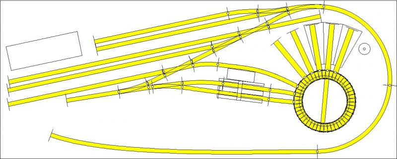 Persoonlijk vind ik de draaischijf met dat omloop spoor er zo omheen een erg lelijke situatie. komt zoiets in het echt wel voor? Waarom zou je het omloop spoor willen eigenlijk. Dan heb je je draaischijf toch niet meer nodig?