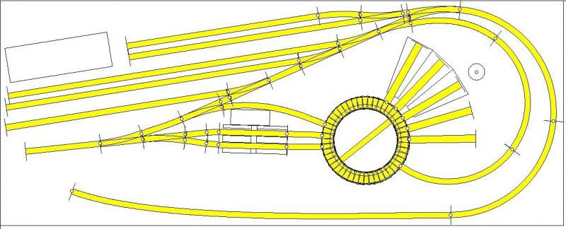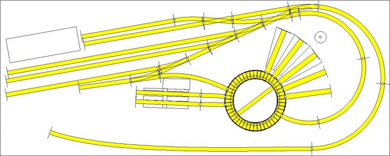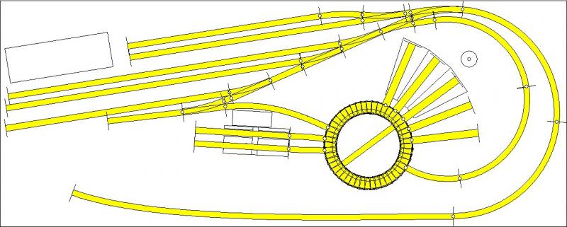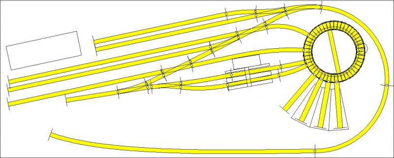 Als je dat omloopspoor (keerlus) laat liggen en de draaischijf weglaat en de twee uiteinden aan elkaar verbindt dan heb je de draaischijf niet eens meer nodig, alleen een paar wissel erbij voor de Locloodsen en je bent klaar.