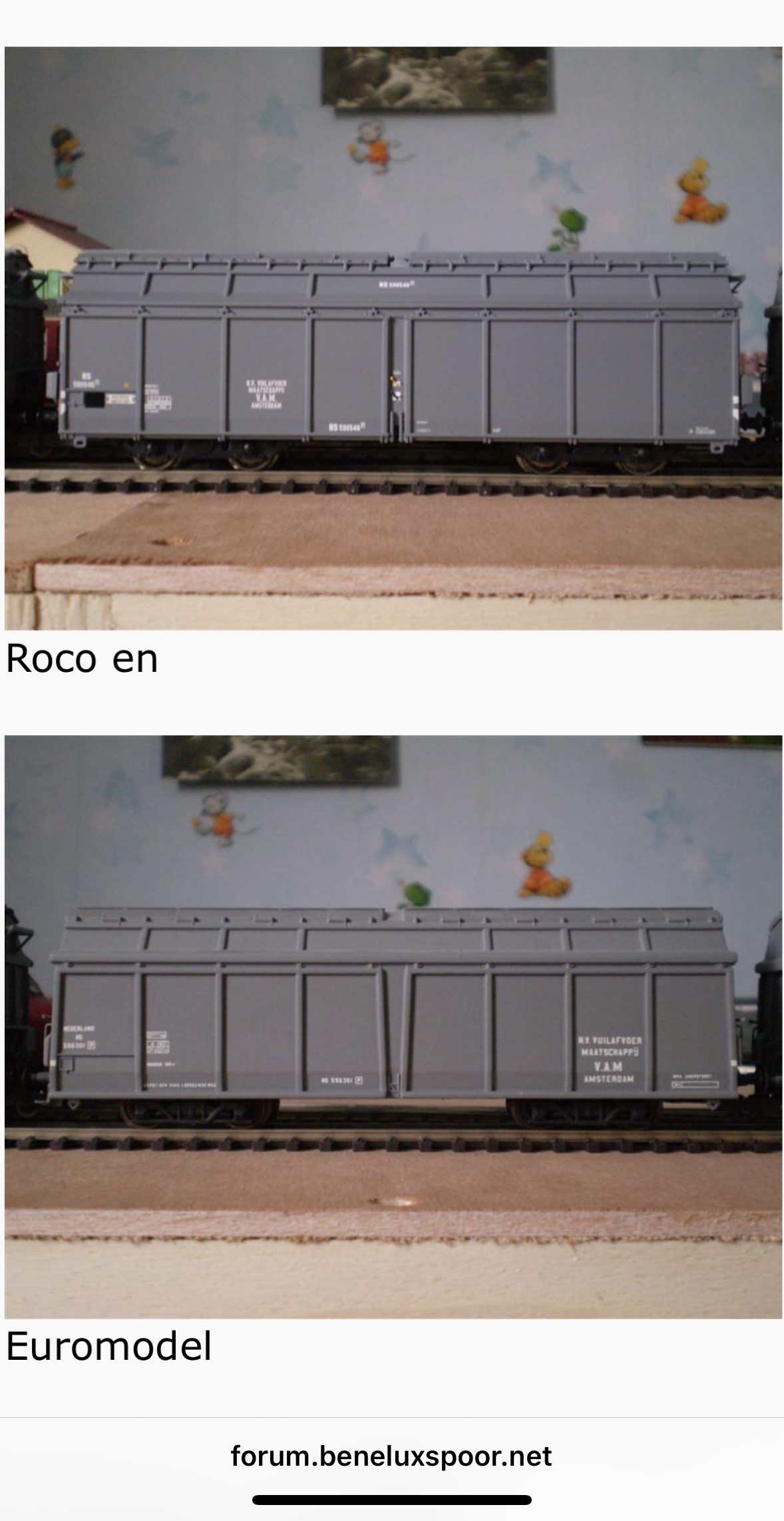 Dat snap ik. Toen het grote voorbeeld van de Roco wagens werden gebouwd waren de bruine 1200'en dus al blauw geschilderd. Zo bekeken kan je daar dan geen bruine 1200 voor zetten. De versie van Euromodel is van voor de oorlog en kan dan wel met een bruine 1200. Op het eerste gezicht lijken al die wagens op elkaar. Bij nadere beschouwing zijn er toch wel verschillen.Aan jou de keuze wat je belangrijk vindt.