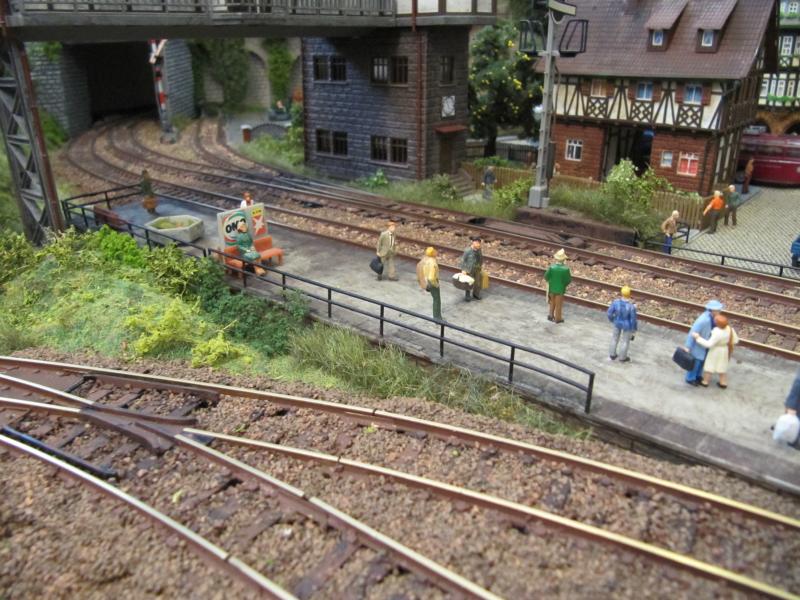 Soms heb je van die kleine dingen op je baan die je ooit niet goed hebt gebouwd, waar je eigenlijk geen zin in hebt om ze te veranderen, maar die je op den duur toch mateloos gaan irriteren. Dat had ik bijvoorbeeld bij het hekwerk langs het perron en het inbedden van de rails op die plek. Je ziet hier dat er een dikke rand onderaan het hekwerk zet, waarmee het op het perron is gelijmd en helemaal rechts onderin een slechte ballastplek.