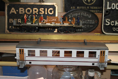 Vond ik net wat te veel. Dezelfde hoogte is niet haalbaar, maar met wat " ouderwets" knip en sloopwerk, kom je een eind de goede kant uit. Dus nee, bankjes zitten er nog niet in. Wel net voorzien van blanke lak, en wat vervuiling...