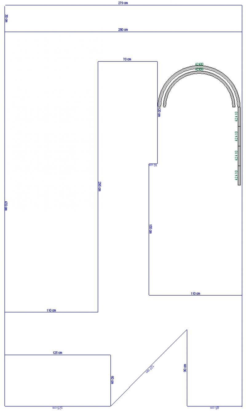 Ik denk dat ik de loop ruimte op 60cm moet houden hopelijk krijg ik daar later geen spijt van anders weet ik het niet meer hoe ik op het rechter gedeelte een spiraal/ovaal moet maken .