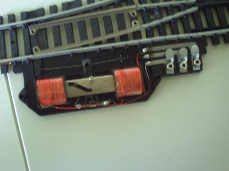 ik wil het nog door een schakelaar laten lopen, omdat ik maar 1 wisselschakelaar heb waarmee ik 2 (van de 9 wissels) kan bedienen en ik wil ze allemaal bedienen liever.