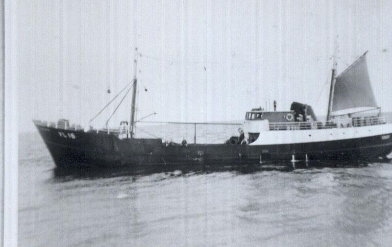 Om te beginnen is het geen Nederlands schip. Het is een troller (zoals wij dat in Vlaardingen plegen te zeggen) uit de 1e generatie. Dit is te zien aan de zijgalgen waar de repen doorliepen om de scheerborden en het net in zee te houden. De vangst komt nog steeds via het zijboord binnen. Deze moderne schepen waren de opvolgers van de Fietsen die met het staandewant viste. Het staande want, of Vleet, is nu voorgoed uit de vaderlandse visserij verdwenen. De vleet gaf wel de lekkerste en beste haring die je krijgen kon, maar dit terzijde. Deze schepen waren zo modern dat zij zelfs een doche aan boord hadden. 8)