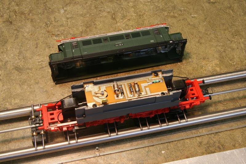 Het pijnpunt in deze loc is dat de stroomafname van één kant (op zijn ombouwfoto's is dat steeds de bovenkant) naar de motor via het chassis verloopt.