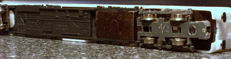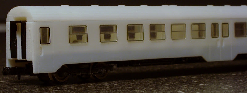 Het is de bedoeling, dat de kap zometeen op het onderstel van een Minitrix NS 1800 gaat passen, zodat de pantograven, buffers en dakisolatoren ook kunnen worden hergebruikt. Helaas is de HLE 11 erg laag en is het nagenoeg onmogelijk om een passend donoronderstel te vinden zonder concessies aan de kap van de HLE 11 te maken. Ik heb het model daarom ook iets moeten verhogen en iets moeten verbreden, zodat het zal passen. Volgens mij valt dat echter nauwelijks op en het zal er in het eindresultaat in ieder geval beter uitzien als een enorme kier tussen draaistel en kap.