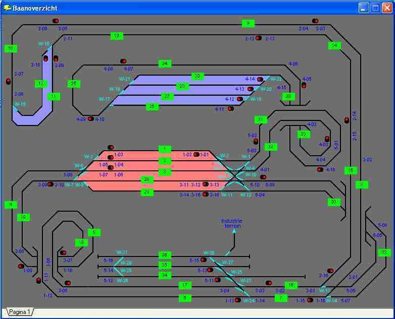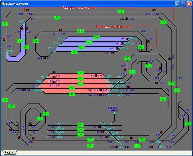 Sporen 1, 2 en 3 worden maar in 1 richting bereden (linksom) en spoor 20 + 21 alleen rechtsom.
