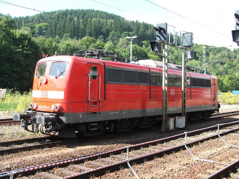 Een 151 die bij een station staat: opdrukloc? Spessartrampe leek het me niet, ook al ben ik in 2000 vor het laatst in Laufach geweest. Geislingen leek me ook niet, dan maar de Frankenwaldrampe. Paar plaatsen langsgegaan en verworpen, gegokt op Pressig-R. Maar, de vrij nieuwe seinen naast de 151 zaten me niet lekker... En nu zijn er op oude foto's van Probstzella van voor de Wende nog armseinen te zien?! Google Maps gebruikt en ja hoor, dat leek te passen :D