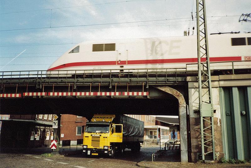 Het volgende plaatje heb ik ooit tijdens mijn werk gemaakt, zie de Scania onder de brug. Ik wil graag de naam van de straat waarop ik stond, toen ik dit kiekje maakte:
