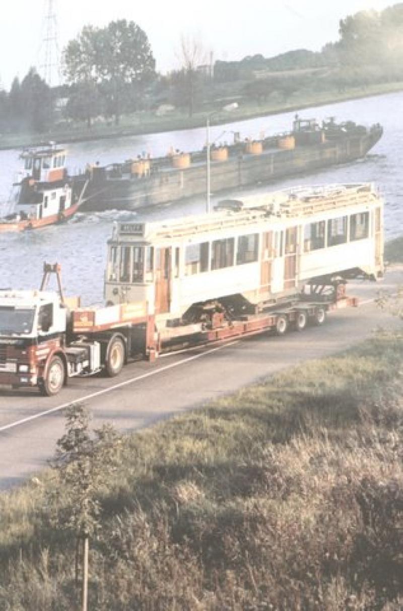 Het ding heeft eens een week of zo heen en weer gereden tussen Utrecht en Nieuwegein. Ik vermoed tgv het 5-jarig bestaan van de lijn. Foto is bij de Jutphasebrug over het Amsterdam-Rijnkanaal. En inderdaad op weg naar de remise daar.