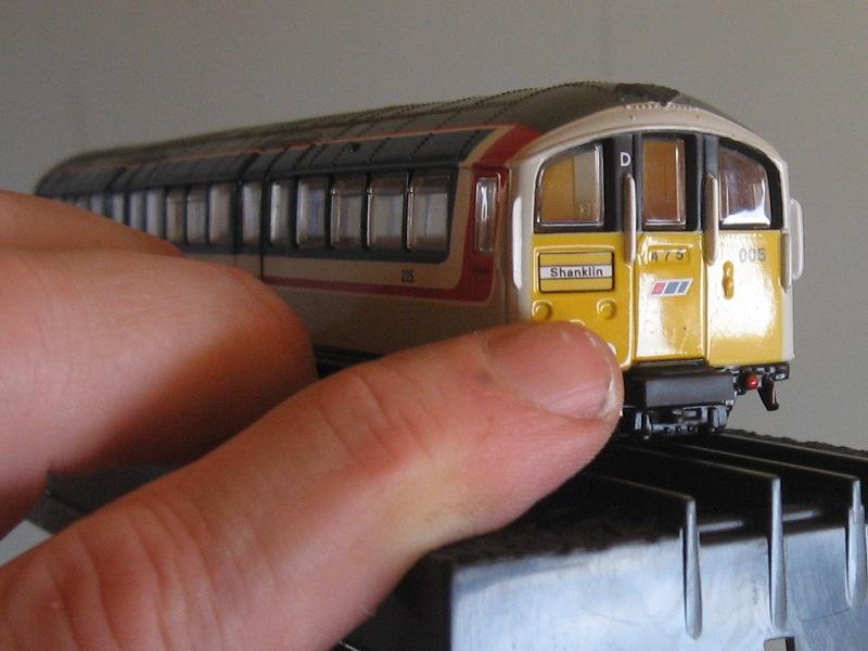 Een ex-metrostel uit London die dienst doen op de spoorlijn Ryde Pierhead-Shanklin, de laatst overgebleven spoorlijn op het eiland. Model in schaal 00 van