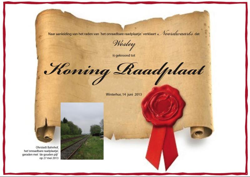 Maar het is tijd voor een gewichte mededeling: heden namiddag om 17:32 uur heb ik Wesley hoogspersoonlijk tot Koning Raadplaat gekroond.