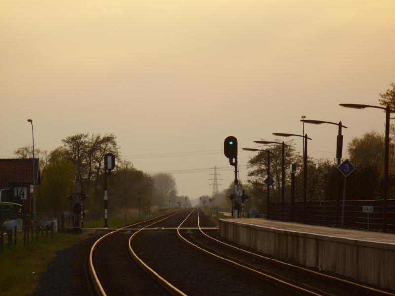Mooie sfeervolle plaat. Nooit ter plekke geweest, maar ik kom wel eens eind van de middag, begin van de avond over de A15 naar het westen. Het laagstaande tegenlicht en de hoogspanningsmast gaven een echt Betuwe-gevoel. De twee bordjes deden dubbel spoor vermoeden en maakten de puzzel wat completer.